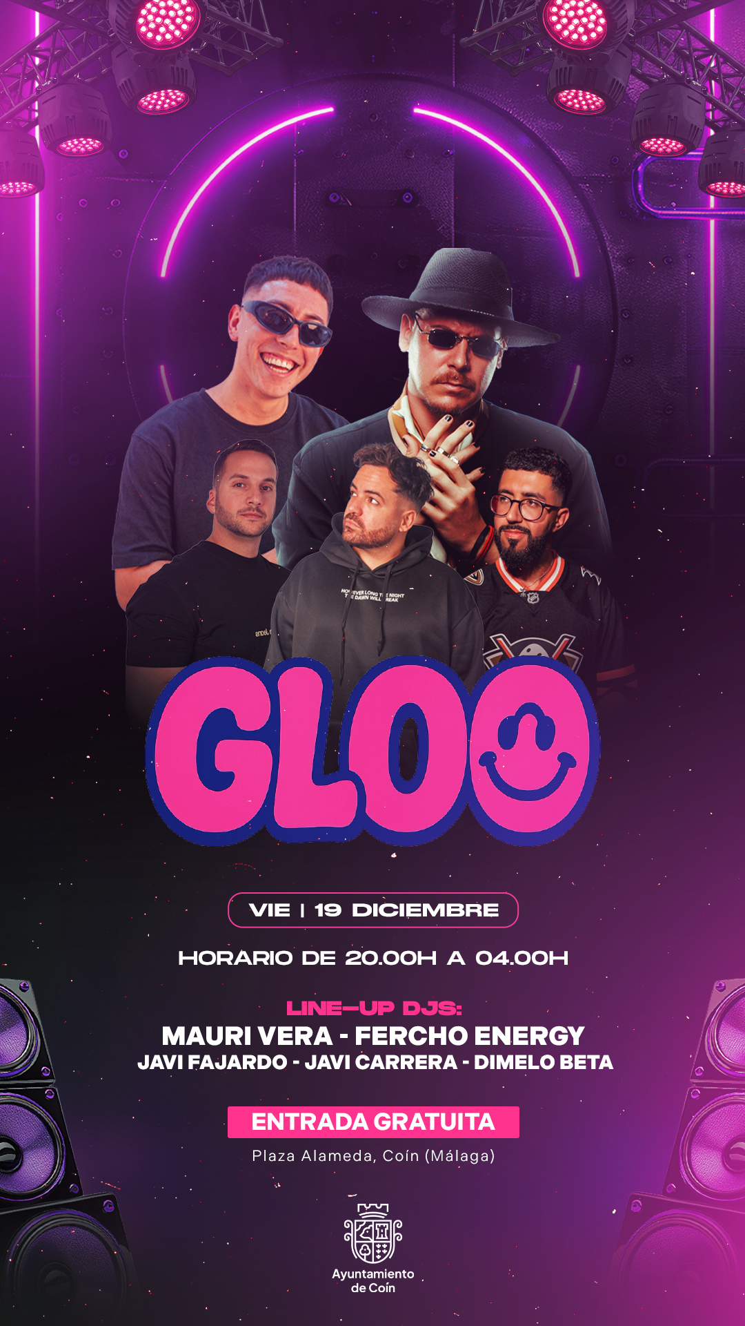 The Gloo Party, aimed at young people, lands in Coín, with DJs Javi Fajardo, Mauri Vera, Fercho Energy, Javi Carrera and Dímelo Beta.