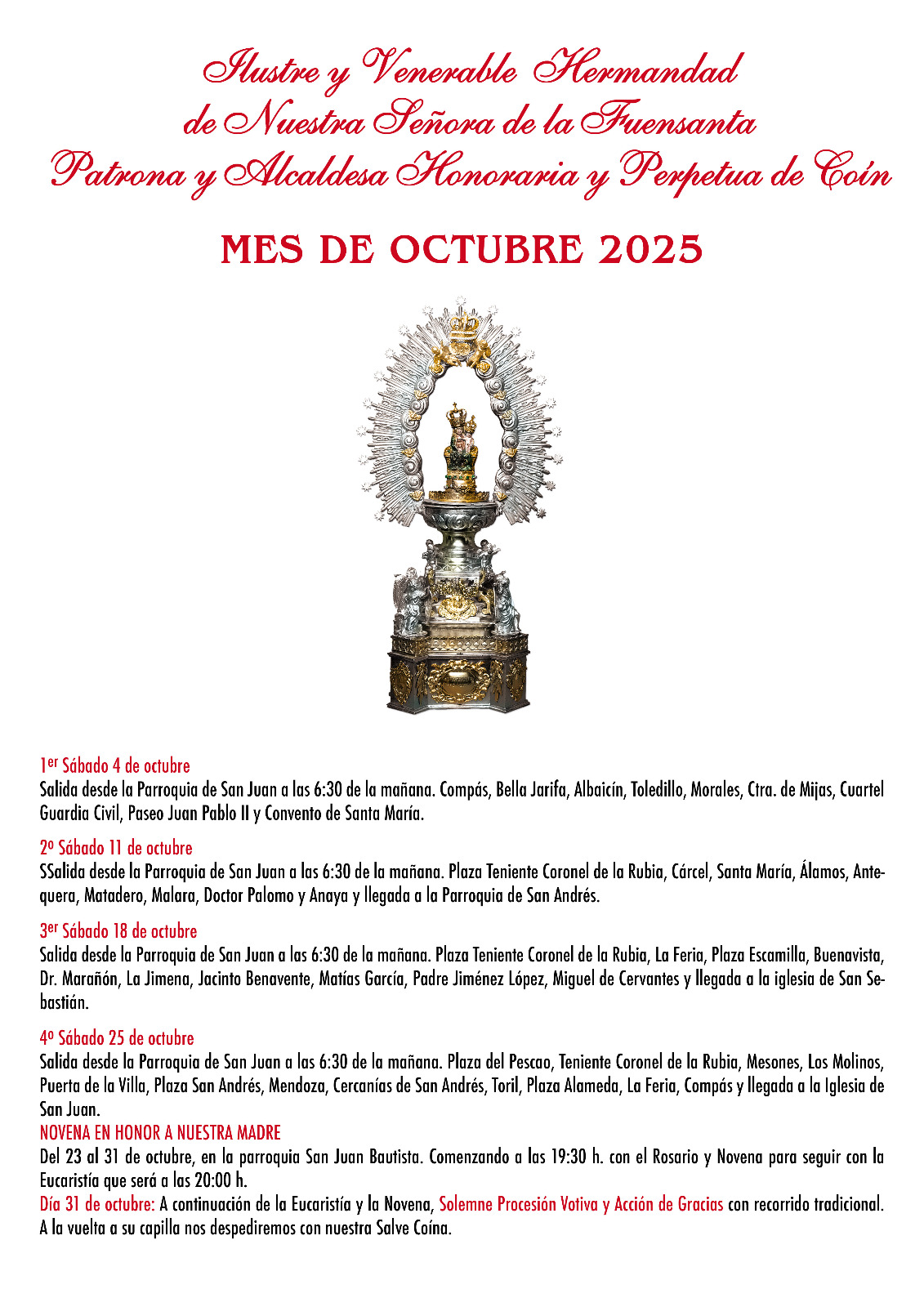ACTOS DEL MES DE OCTUBRE - HDAD. VIRGEN DE LA FUENSANTA