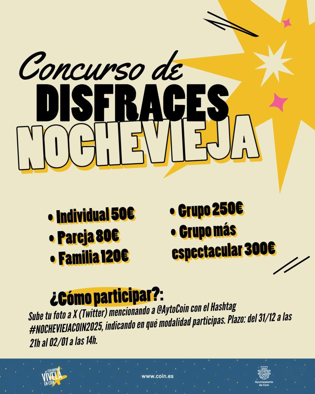 Acude con tu disfraz y participa en el “Concurso al mejor disfraz de la Nochevieja 2024” (Consultar bases del concurso):