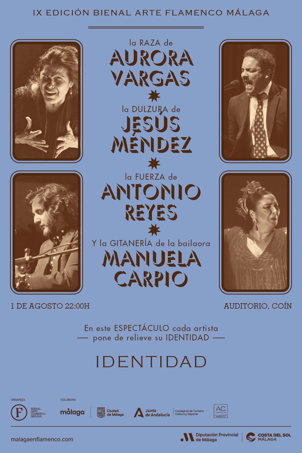Y es que en palabras del propio Gonzalo Rojo, el de Coín es “uno de los mejores carteles de espectáculo de flamenco que trae este año la Bienal de Málaga, si no el mejor, teniendo en cuenta que este año la programación viene con un nivel y categoría muy alta”, ha expresado. El elenco artístico está compuesto por cuatro artistas de renombre dentro del panorama nacional en el flamenco. Un espectáculo en el que se podrá degustar el mejor flamenco, fusionando la raza de Aurora Vargas, la dulzura de Antonio Reyes, la fuerza arrolladora de Jesús Méndez y la gitanería de la bailaora Manuela Carpio.
