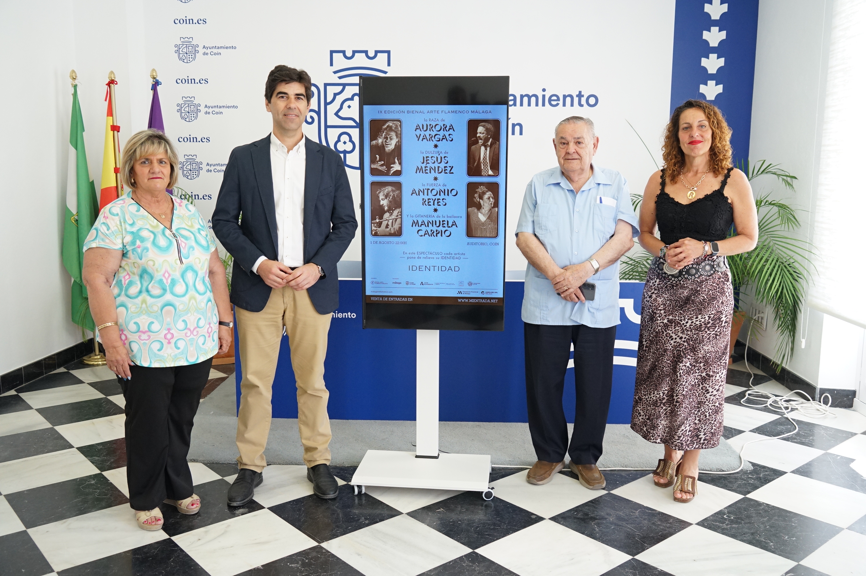 “Un cartel flamenco con mucha fuerza y de primer nivel”, así ha definido el alcalde de Coín, Francisco Santos, el espectáculo flamenco que acoge la ciudad el 1 de agosto. Se trata del cartel del XLII Festival Flamenco de Coín y XXXIV Memorial Pepe de la Isla, y forma parte de la IX Bienal de Arte Flamenco de Málaga. Esta mañana, el regidor coineño junto a la concejala de Cultura, Raquel López; el presentador del espectáculo y flamencólogo coíno, Gonzalo Rojo; y la presidenta de la Peña Flamenca de Coín, Paqui Luna, han presentado dicho evento en el Ayuntamiento de la localidad. “Vamos a disfrutar del mejor flamenco, con garra, con fuerza y con un nivel muy alto en un entorno privilegiado como es nuestro Parque Leonor Princesa de Asturias, por lo que animo a todos nuestros vecinos y visitantes a que vengan, que compren sus entradas y no se pierdan este gran espectáculo”, ha destacado Santos.