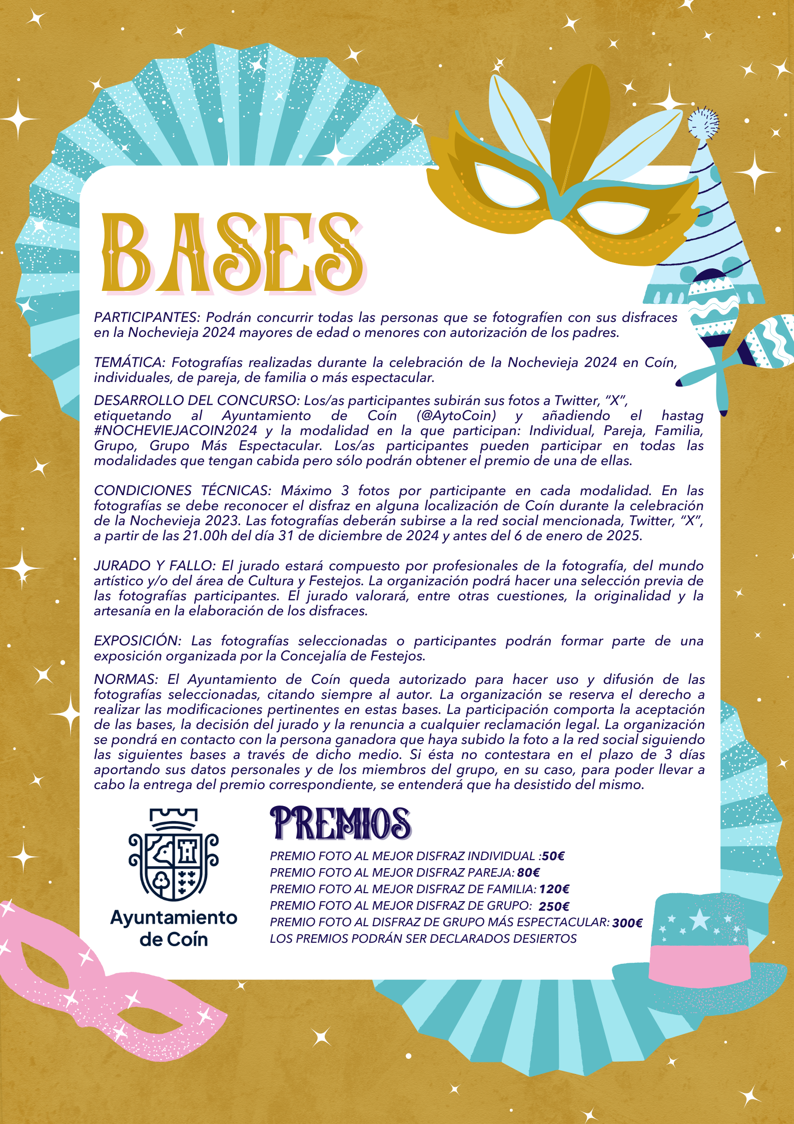 Acude con tu disfraz y participa en el “Concurso al mejor disfraz de la Nochevieja 2024” (Consultar bases del concurso):