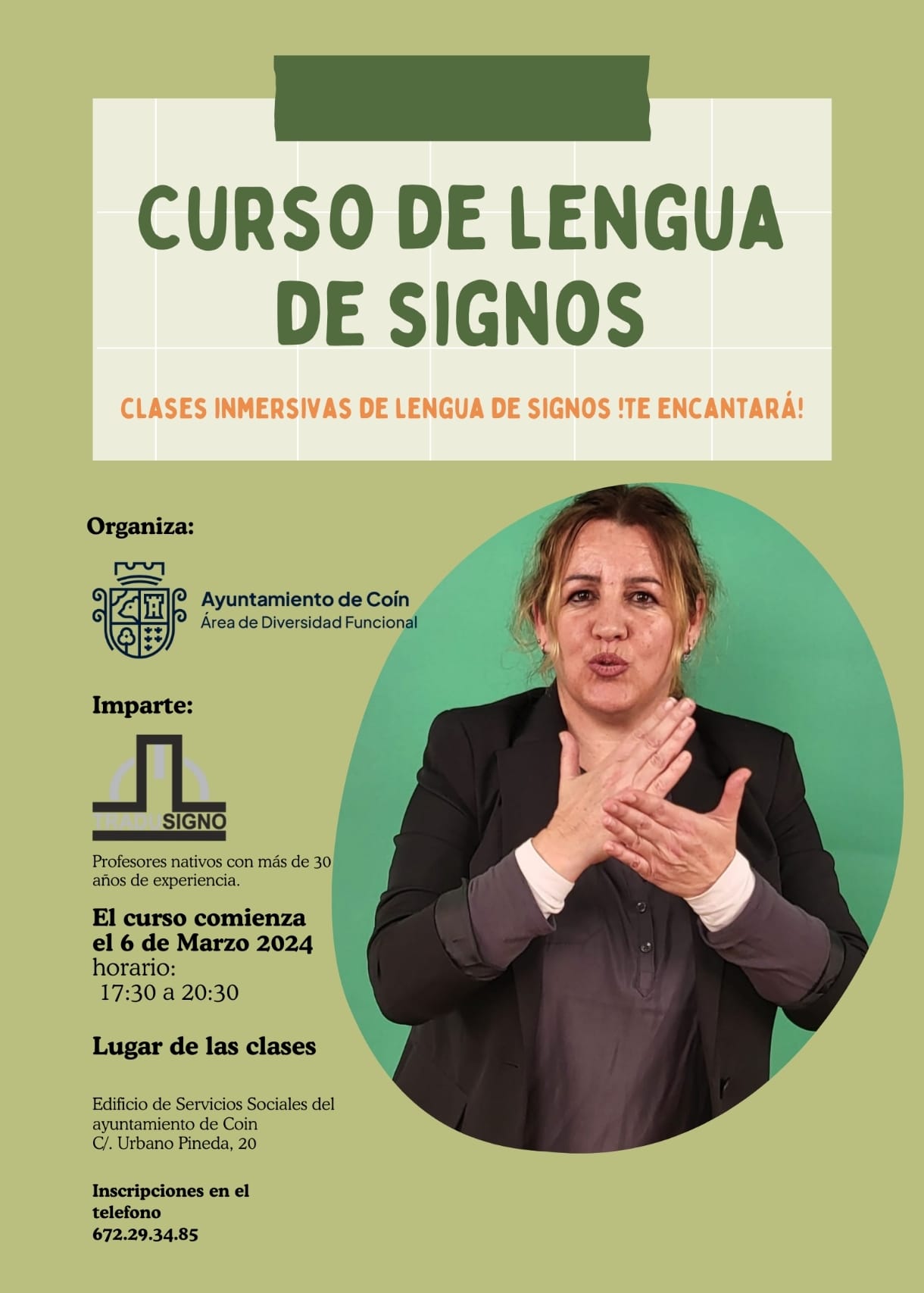 ¿Quieres saber cómo? Inscríbete escríbiendo al teléfono 672293485 y aprende lengua de signos