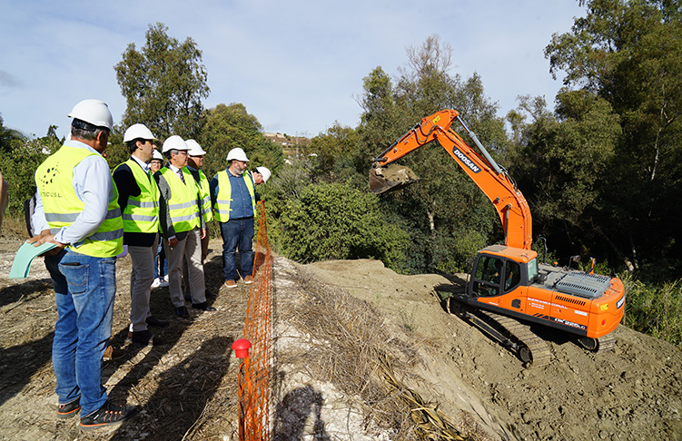 El alcalde de Coín, Francisco Santos, y el presidente de la Diputación de Málaga, Francisco Salado, visitan el inicio de las obras para la construcción