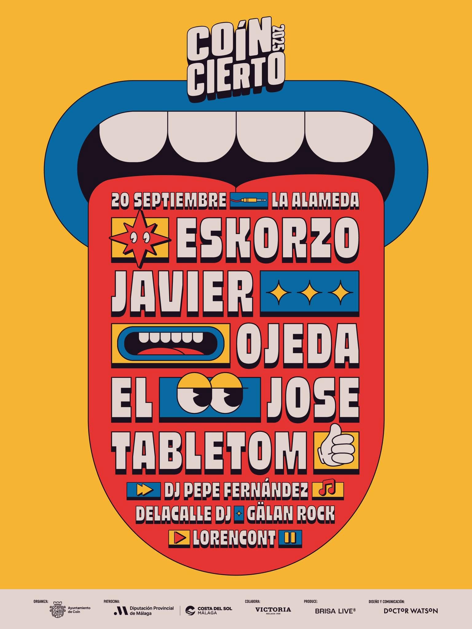 Regresa el Coincierto en su edición 2025 para cerrar el extenso programa festivo de este verano en Coín. Organizado por el Ayuntamiento de la localidad e impulsado por la Diputación de Málaga, ha sido presentado hoy en la sede supramunicipal. Esta nueva edición tendrá lugar el día 20 de septiembre. Cuenta con un gran cartel protagonizado por Tabletom, El Jose, Eskorzo y Javier Ojeda como protagonistas. Junto a ellos estará la banda alhaurina Gälan Rock, el rapero coíno LorenconT y los DJ’s locales DeLaCalle y Pepe Fernández, para completar el cartel e impulsar el talento local. Se celebrará el sábado 20 de septiembre en la plaza de la Alameda de Coín, con entrada gratuita.