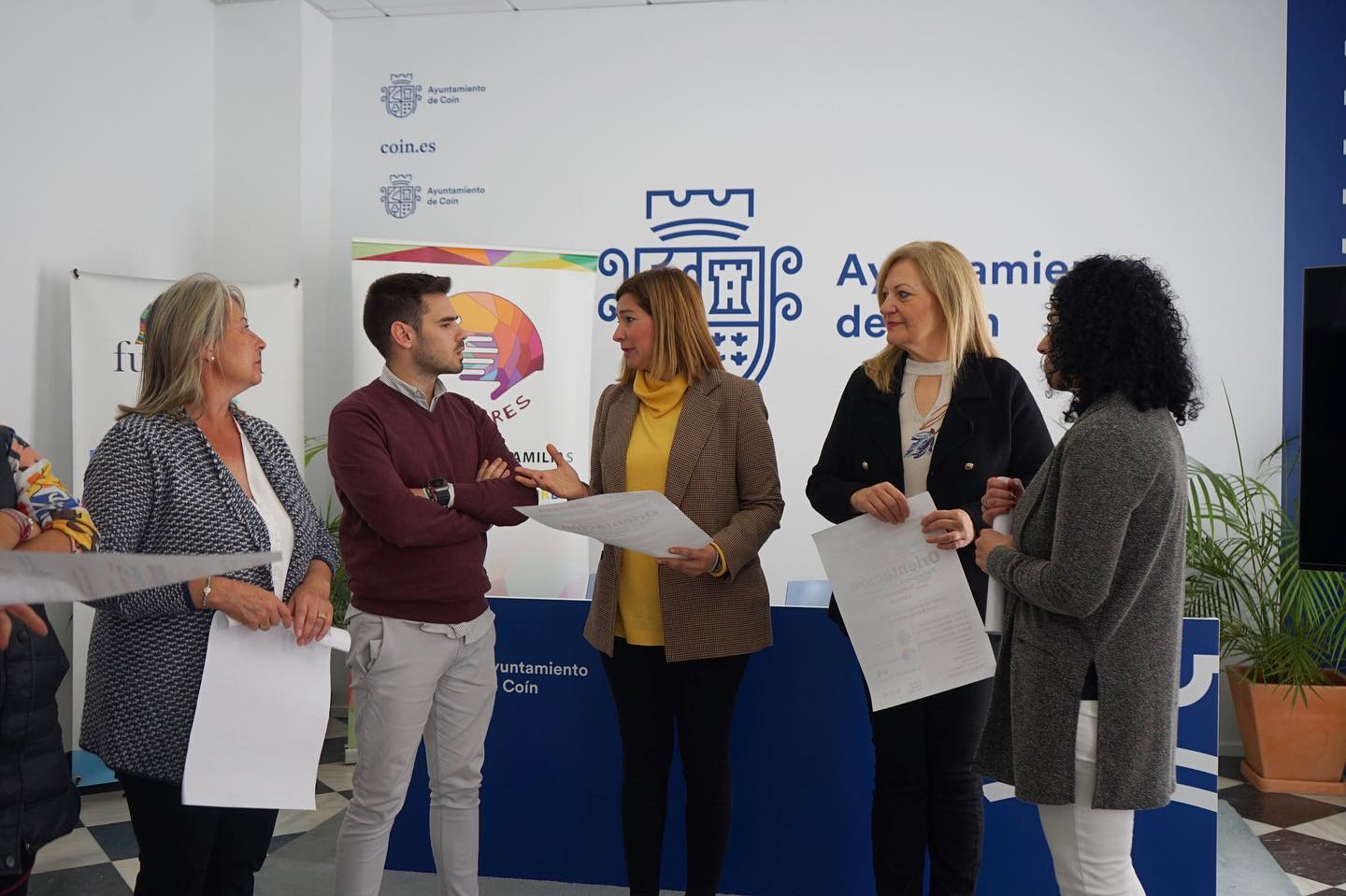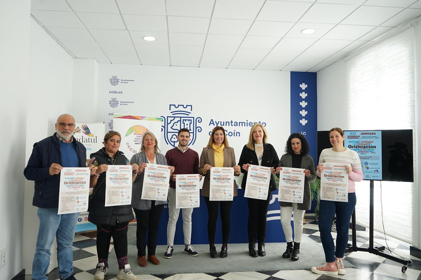 El Ayuntamiento de Coín continúa reforzando la atención para la inclusión social y laboral para las personas con diversidad funcional con la XII Jornada. Esta mañana, la concejala de Diversidad Funcional y Servicios Sociales, Belén González, acompañada por el concejal de Juventud Juan Antonio Vernal, así como por miembros de la Asociación Decolores, Federación Nacional Aspaym, Fundación Tutelar Fundatul, Asociación Síndrome de Down Down Málaga, y personal del centro Sonríe y Pestañea ha presentado la duodécima edición de las jornadas dedicadas a la Diversidad Funcional tituladas este año "Orientación laboral, y después de los 21... ¿qué?". "Este año con el enfoque centrado en la orientación laboral desde el Ayuntamiento de Coín queremos plantear una reflexión sobre la plena capacitación que tienen las personas con diversidad funcional y nuestro convencimiento sobre su posible y exitosa inserción en el ámbito laboral". ha comenzado indicando González.