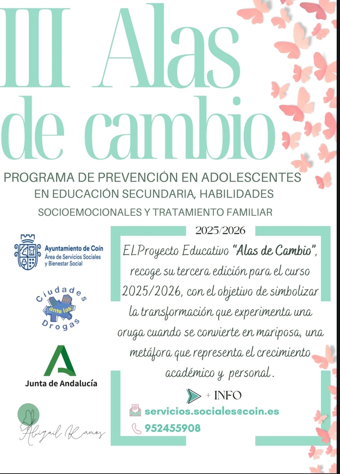 Por otra parte, este curso se continuará con el programa Alas de Cambio, un proyecto preventivo que trabaja directamente con los adolescentes en la etapa de la ESO, ayudándolos a tomar decisiones más saludables y conscientes en una etapa clave de su desarrollo. Asimismo, se iniciará un programa de digitalización que también se desarrollará en los centros educativos, dirigido a niños y niñas de Primaria, para informarles sobre un uso responsable y formativo de las nuevas tecnologías.