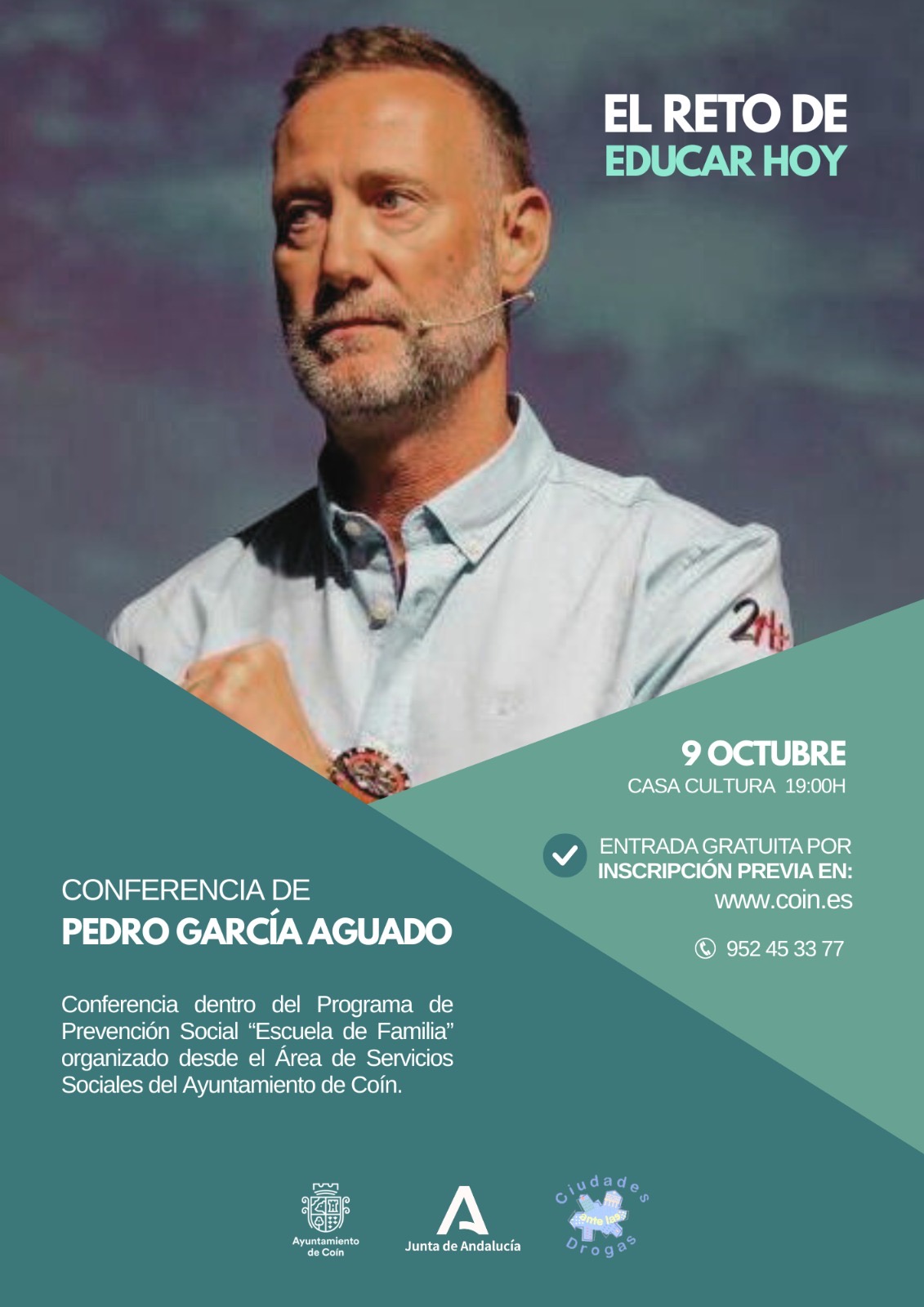 El alcalde coineño ha destacado que el próximo 9 de octubre se celebrará una ponencia del profesional y experto Pedro García Aguado con la conferencia ‘El Reto de Educar Hoy’. Se trata de una cita abierta a toda la ciudadanía, “un espacio para reflexionar y aprender sobre los grandes desafíos de la educación de hoy”. Así, ha querido invitar a participar a todos los vecinos y vecinas, así como a los centros educativos a que acudan a esta ponencia. El evento tendrá lugar en la Casa de la Cultura a las 19:00h. La entrada será gratuita previa inscripción en la web municipal. Más información en el 952 45 33 77.