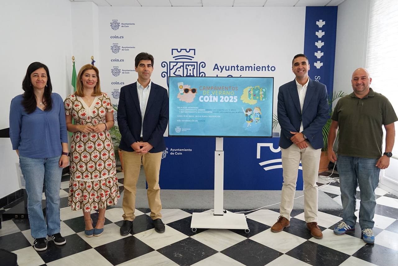 Esta mañana ha tenido lugar la presentación de toda la oferta conjunta de campamento municipal del Ayuntamiento de Coín en la sala de prensa, donde además del regidor coineño, han estado presentes la concejala de Participación Ciudadana y Servicios Sociales, Belén González, y el concejal de Deportes, Jorge González, además de sus respectivos técnicos encargados de esta iniciativa.