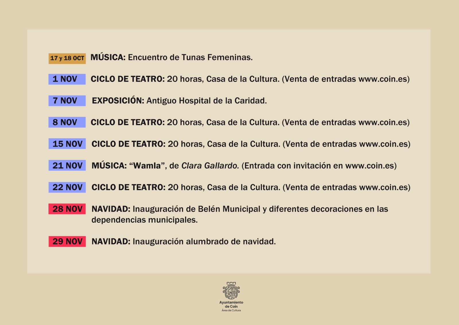 Starting on 19 September with the play Hambre de la Líquida, we welcome this programme, which will surprise us with each event until 29 November, when the Christmas student exhibition will be inaugurated 🎄