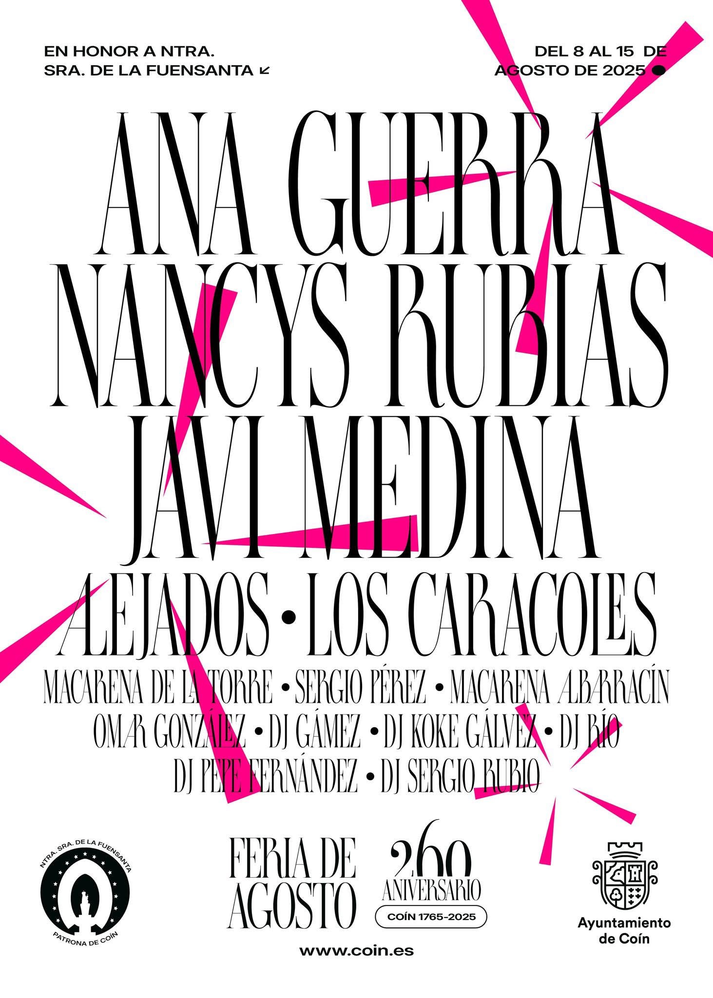 Las Nancys Rubias, Ana Guerra, Javi Medina y Alejados, protagonistas de la Feria de Agosto de Coín, del 8 al 15
