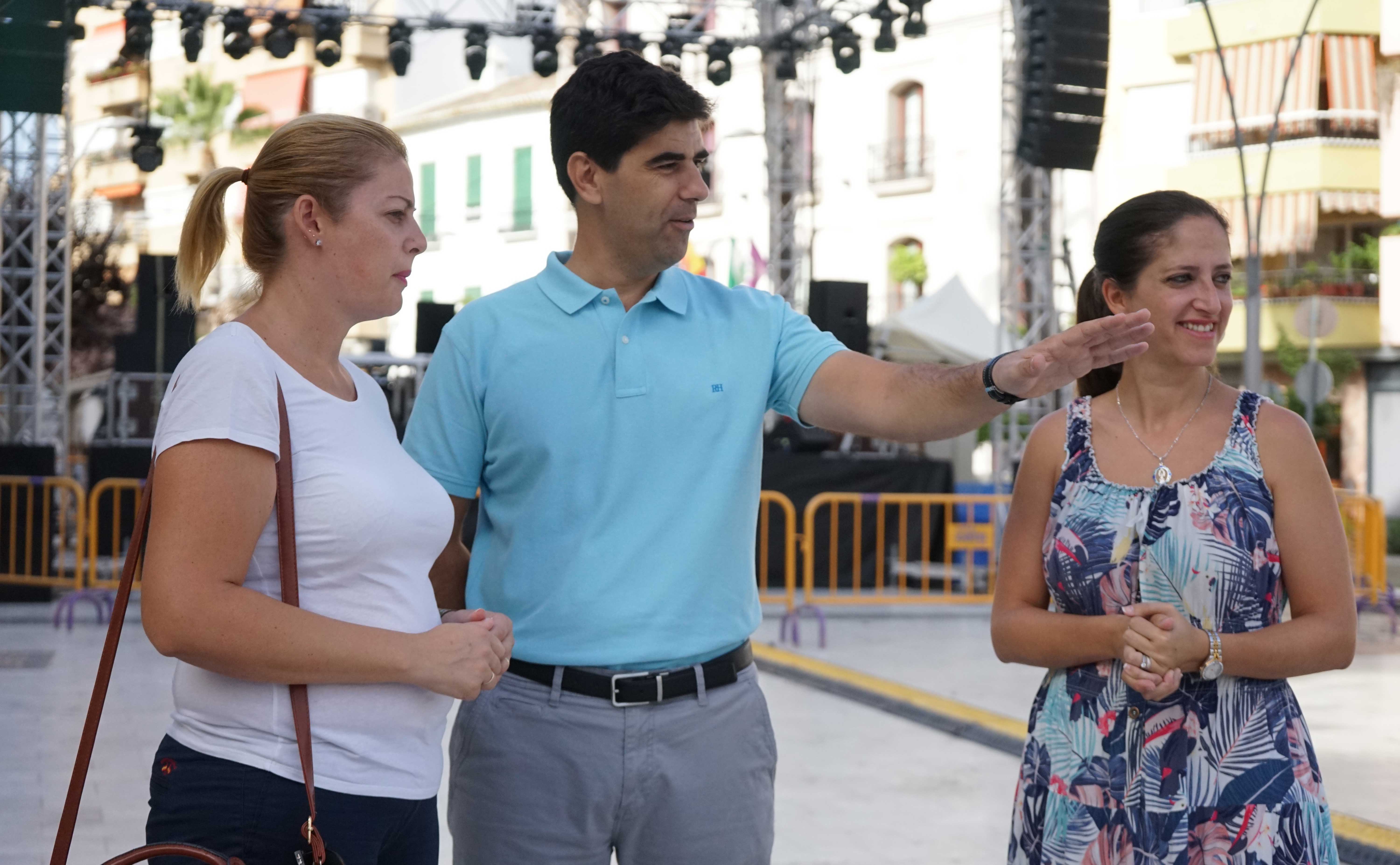 Durante este jueves se están dando los últimos retoques antes de comenzar las Fiestas Patronales de Coín 2019 que se celebran del 9 al 15 de agosto. Todo está casi listo para disfrutar durante una semana de una “intensa agenda de eventos”, así lo ha afirmado esta mañana el alcalde, Francisco Santos, que ha acudido junto a la concejala de Festejos, Dori Luque, y miembros de su equipo, a la plaza de la Alameda, punto neurálgico de la celebración de estas fiestas. “Ya están todos los preparativos prácticamente finalizados para que podamos disfrutar de estas fiestas que, sin duda, van a ser un éxito”, ha destacado Santos.